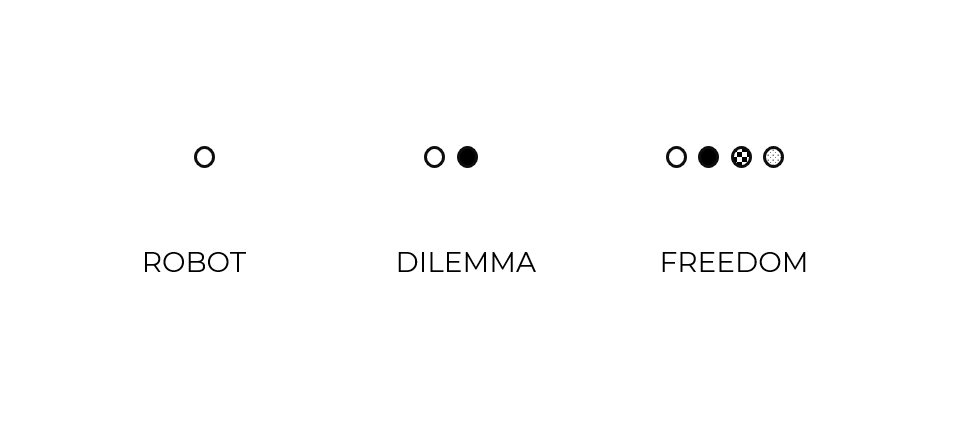 “One choice is robot”: This refers to having no alternative. If you are only given one option, you are essentially programmed to follow it, much like a robot.